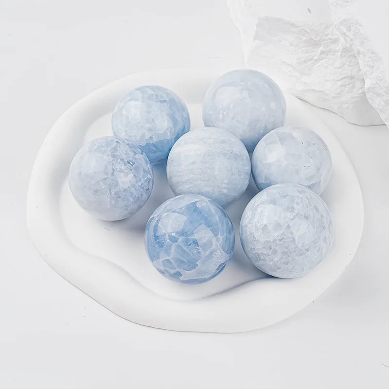 Bring peaceful, uplifting energy into your space with this 1PC Natural Blue Celestite Crystal Sphere. Beautifully polished into a smooth round shape, celestite is known for its calming vibrations and ability to promote clarity, relaxation, and spiritual connection. Each sphere is random and unique, featuring soft blue tones and natural crystal variations—perfect for meditation, Reiki, or elegant home décor.