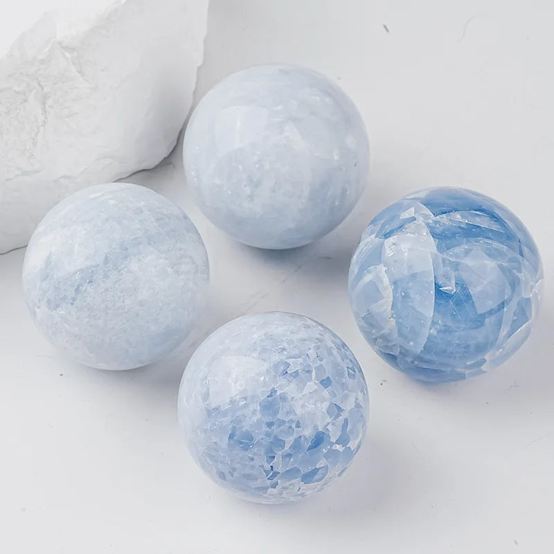 1PC Random Natural Blue Celestite Crystal Sphere – Polished Healing Stone for Calm, Clarity & Home Décor