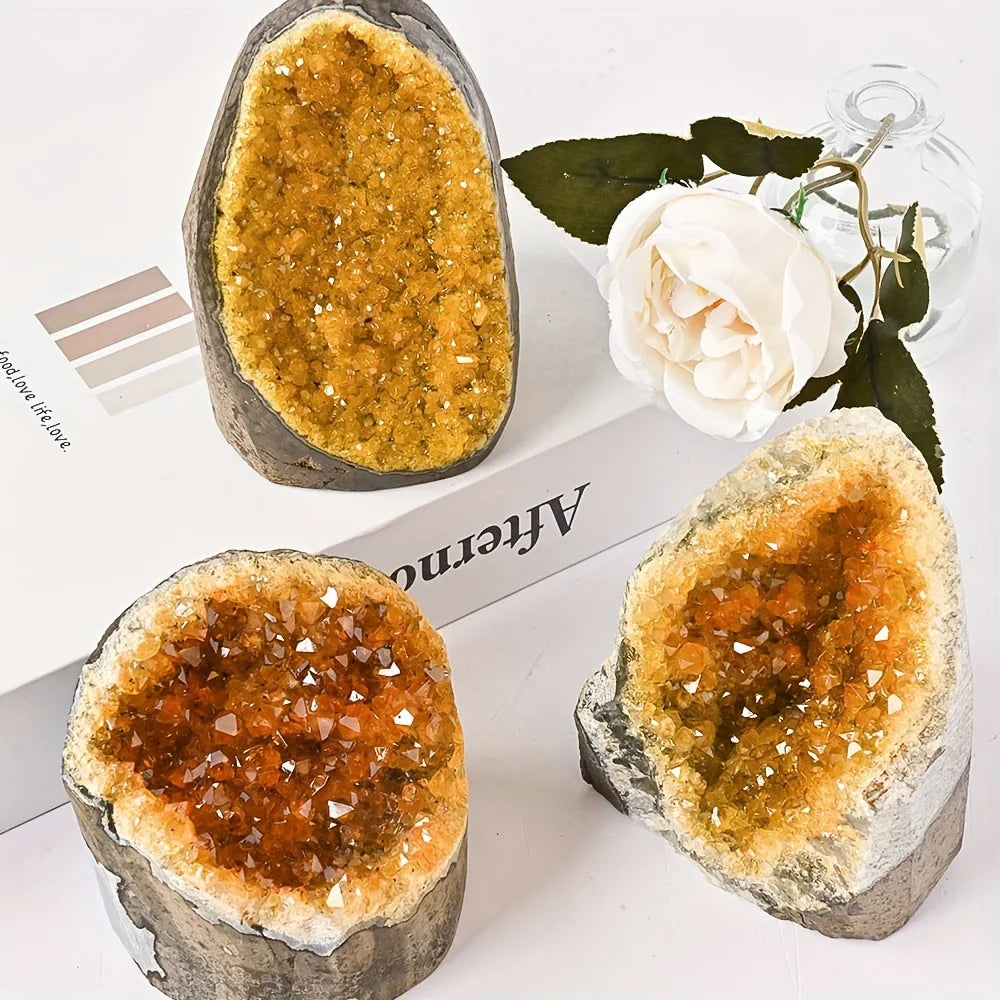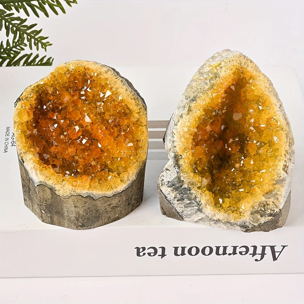 1PC Natural Citrine Cluster – Polished Electroplated Mineral Specimen for Abundance & Positive Energy