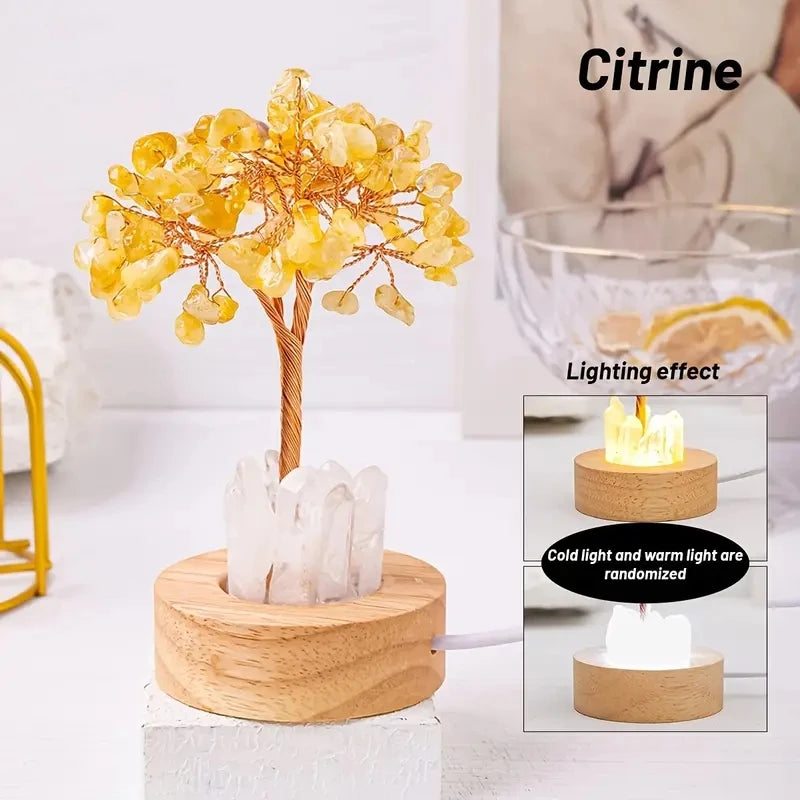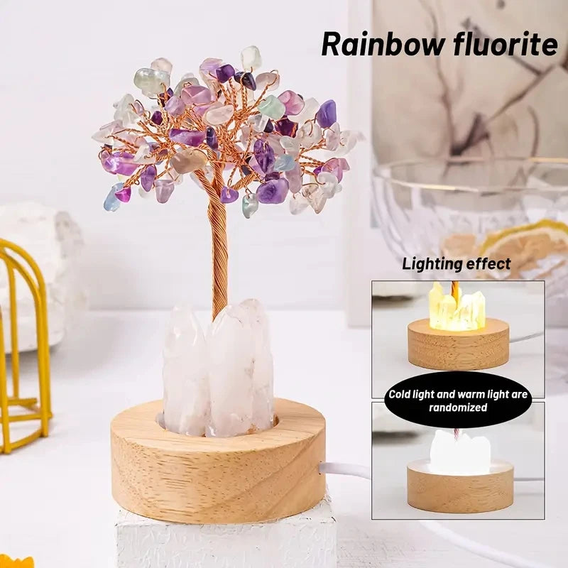 1PC Natural Crystal Chip Tree Lamp – USB Powered with Crystal Base for Energy & Décor