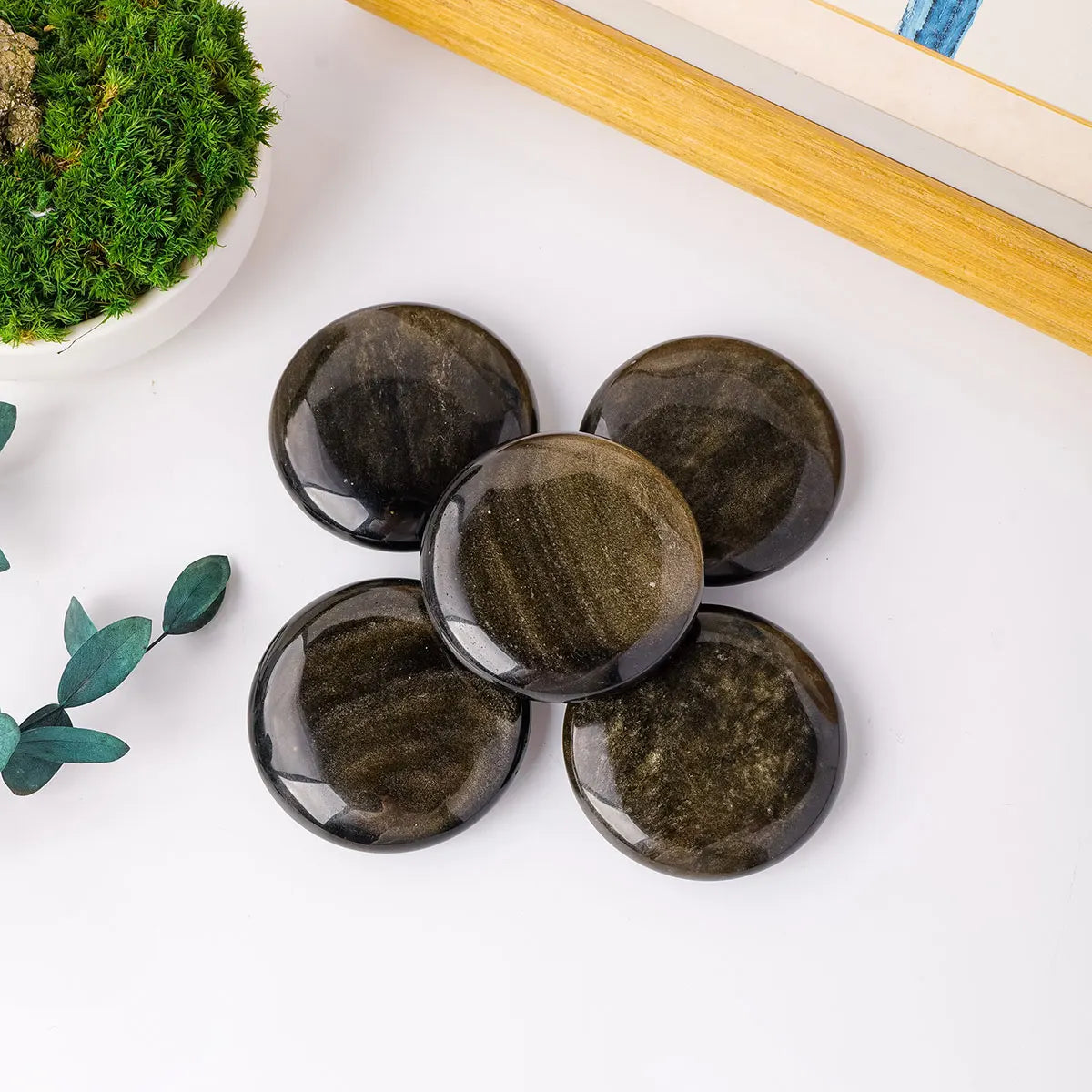 1PC Natural Golden Obsidian Worry Stone – Polished Palm Gem for Anxiety Relief & Chakra Balance