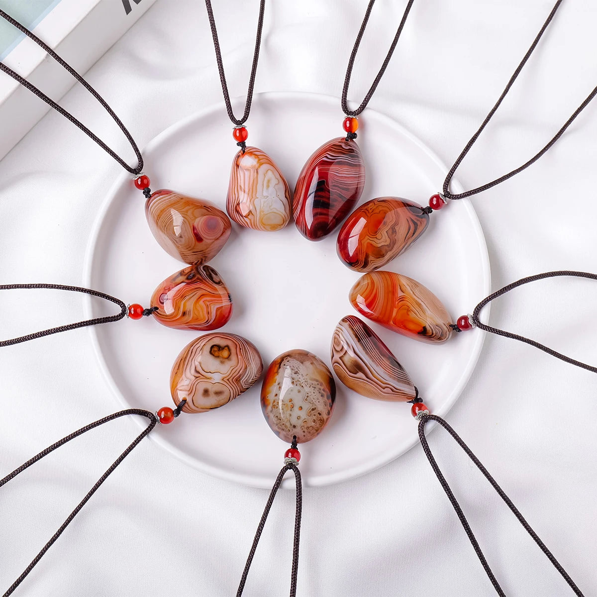 1PC Natural Sardonyx Tumbled Stone Pendant – Raw Polished Healing Crystal for Strength & Balance
